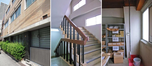 タイル張りの外観、木製の階段手摺、現しの躯体…etc.