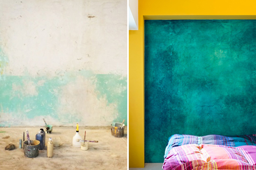 何の変哲も無い壁に左官材や塗料を重ね古びた雰囲気や独特のムラなど