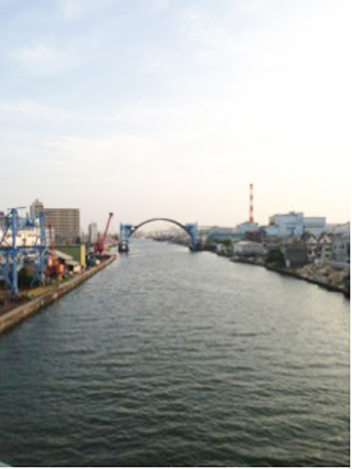 水辺のシーンが多い大正区。国道43号線を渡る途中に見えた尻無川水門。