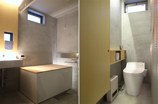 と、モルタル仕上げの玄関、お風呂、トイレが一体となった開放的な空間に度肝を抜かれます。