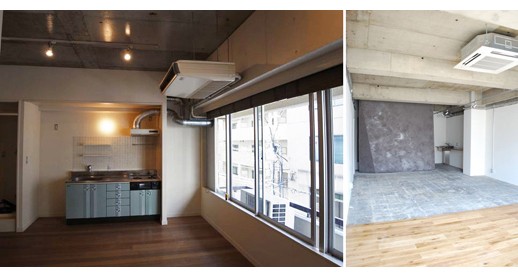 写真左:「居心地のいいオフィス」14.84平米/4.7万〈1〜2人向け〉