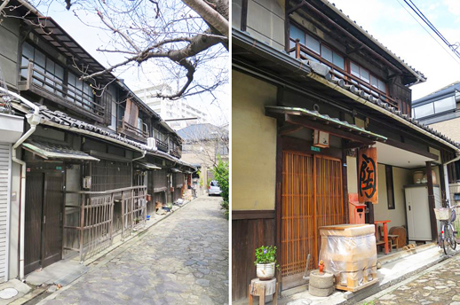 工芸高校の北側には石畳の路地と長屋。一番奥の長屋は陶芸教室でした。