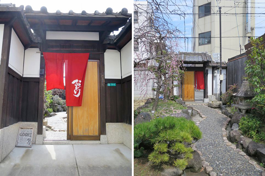 工芸高校からJR美章園方向へ5~6分進むと、立派な門に赤いのれんがかかった