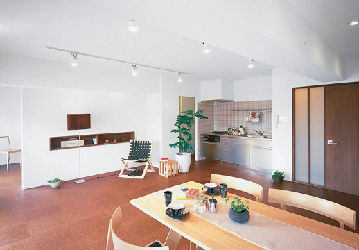 竣工時のLDK。全室コルクタイル貼で素足でも気持ちいい。