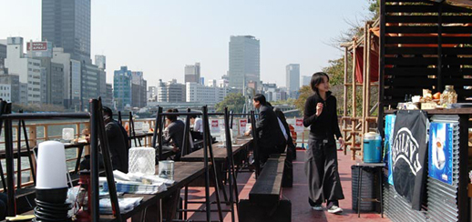 天満埠頭(2004年)。期間限定の水上カフェを設計・設営しました