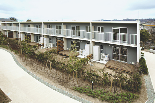ほとんど何でも相談に乗りますと言う入居者に歩み寄る大家さんの平屋。