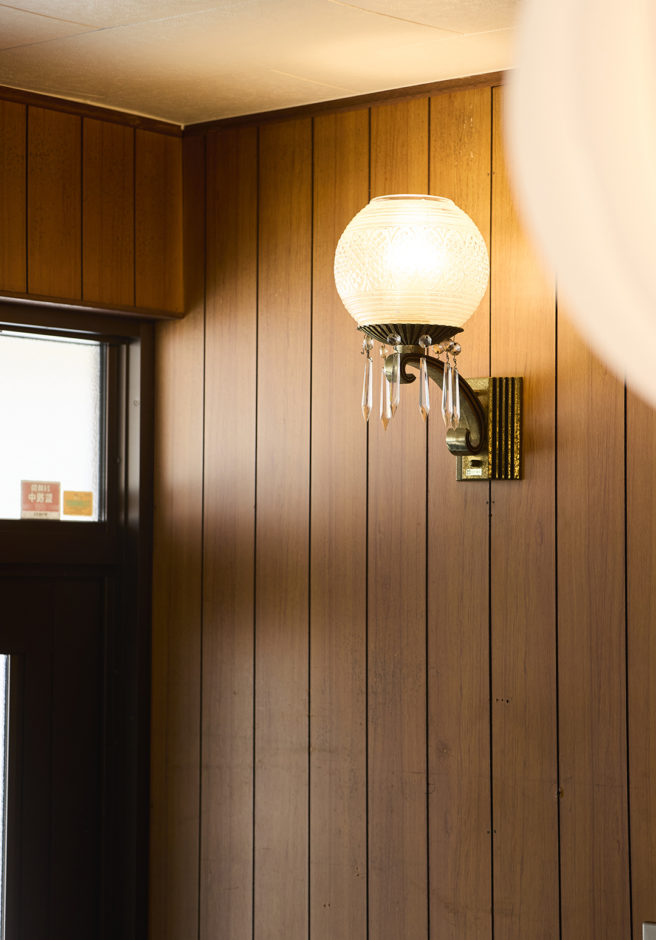 懐かしい照明やガラス、仕上げなどできるだけそのまま利用。