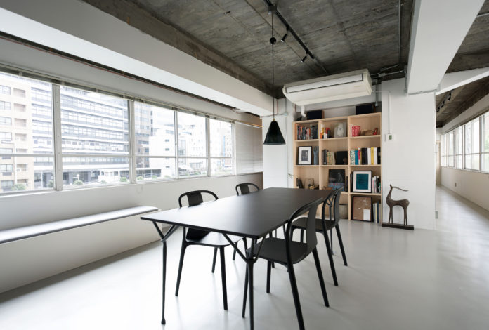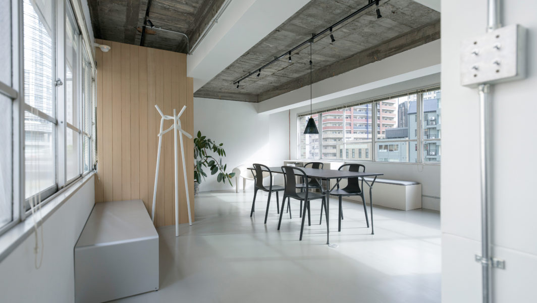 グラフィックデザイン事務所のオフィス拡張計画。事務所を構えるのは、建築家岸田日出刀氏が設計した、大阪市中心部の川沿いに建つビルの一室。水平連続窓が特徴的で、窓からは水都大阪を象徴するようなリバービュー!約30平米のコンパクトな区画をオフィスとして使用していたが、隣の区画が空いたこと、スタッフが増えたことなどから、隣の区画も借りて拡張することに。