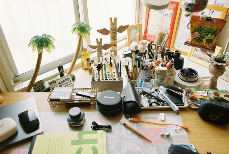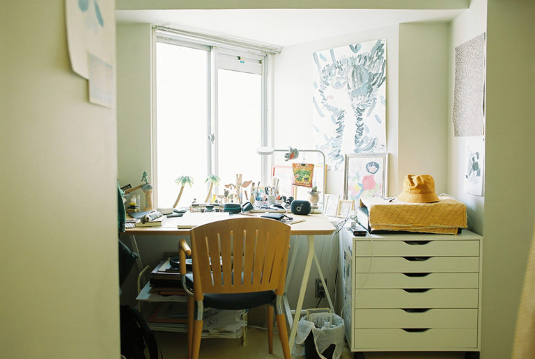 アートディレクターの仕事をしながら、自身も絵を描くなど作品づくりにも取り組む夫の作業部屋。