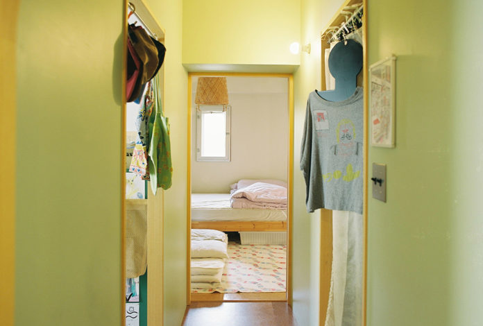 寝室の隣にはこれまたたくさんの本を収納する書庫。寝室からも、夫の作業部屋からもアクセスできる。