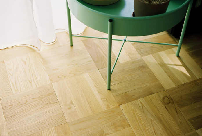 シンプルで美しい市松貼りのミニパーケット。無垢のオークの風合いを活かすオイル仕上げ。