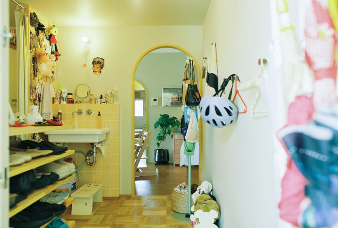 玄関は少し広げて、帰ったらすぐに手を洗えるように洗面台を配置。