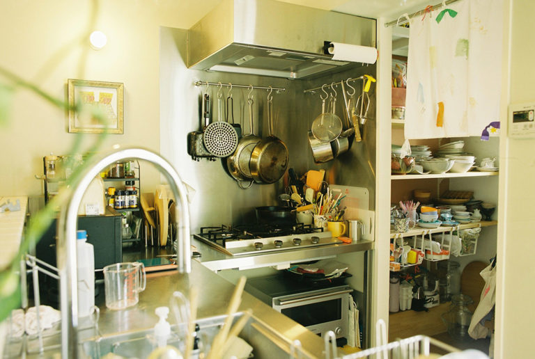 イメージはプロが使う業務用キッチン。スチールの脚にステンレスの天板を載せて使い勝手は抜群!