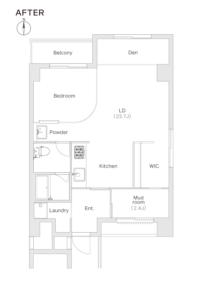 独立したランドリー。〈Mud room〉は室内干し派のインナーバルコニーとしても。