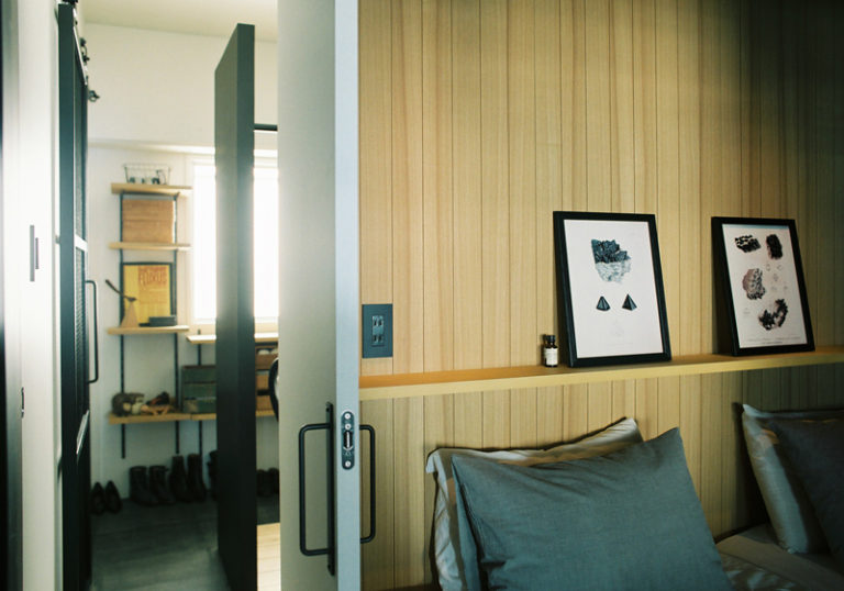 また、最近人気なのは、もともとは下地材であるラワンベニヤを壁に貼る仕上げ。独特の色味と木目が人気の理由です。